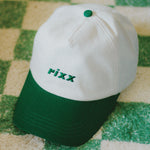 Essential Cap in Green and White is a 5-panel fit cap featuring our essential rixx logo.